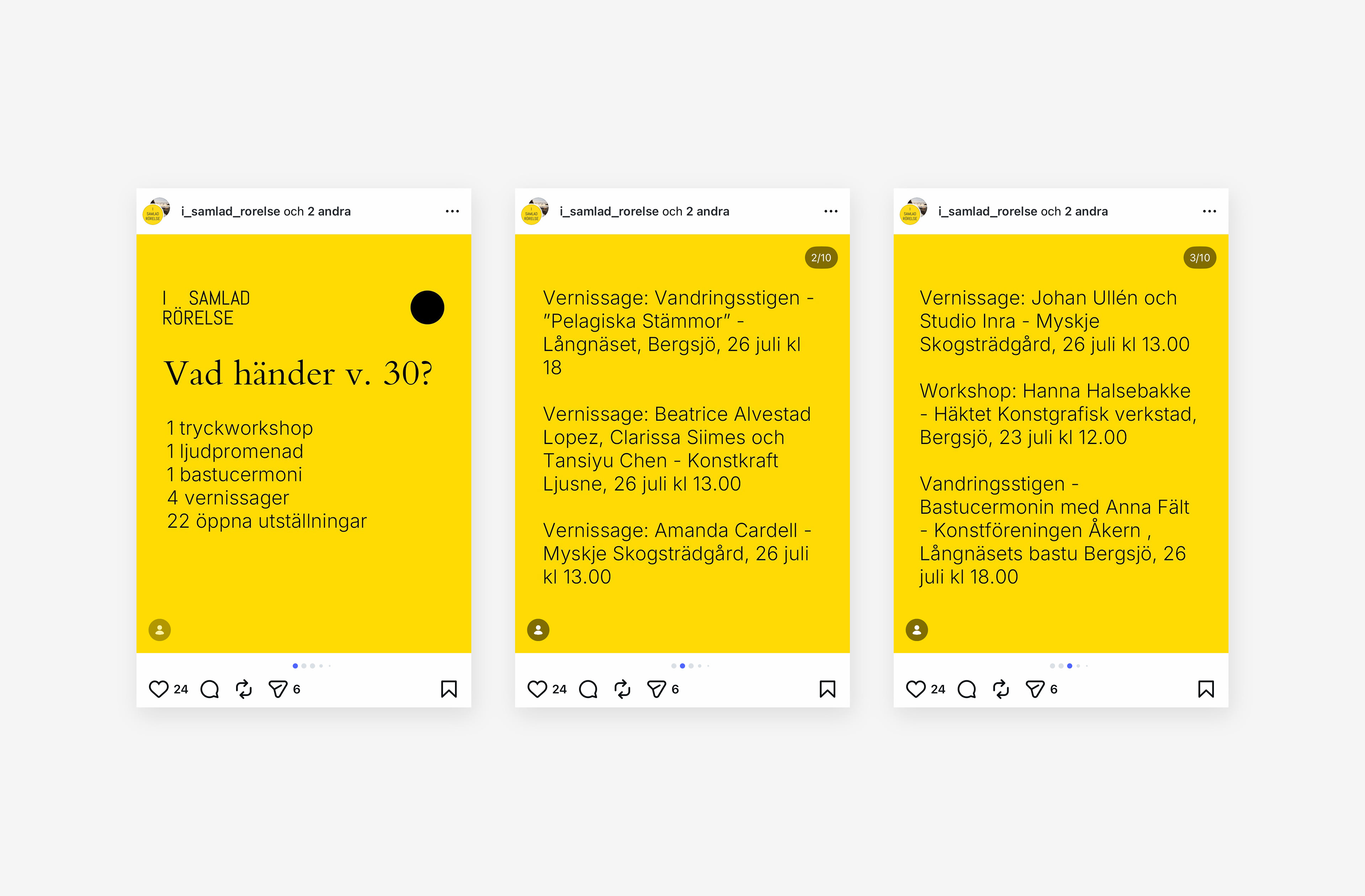 Karusellinlägg på Instagram med aktuellt program.